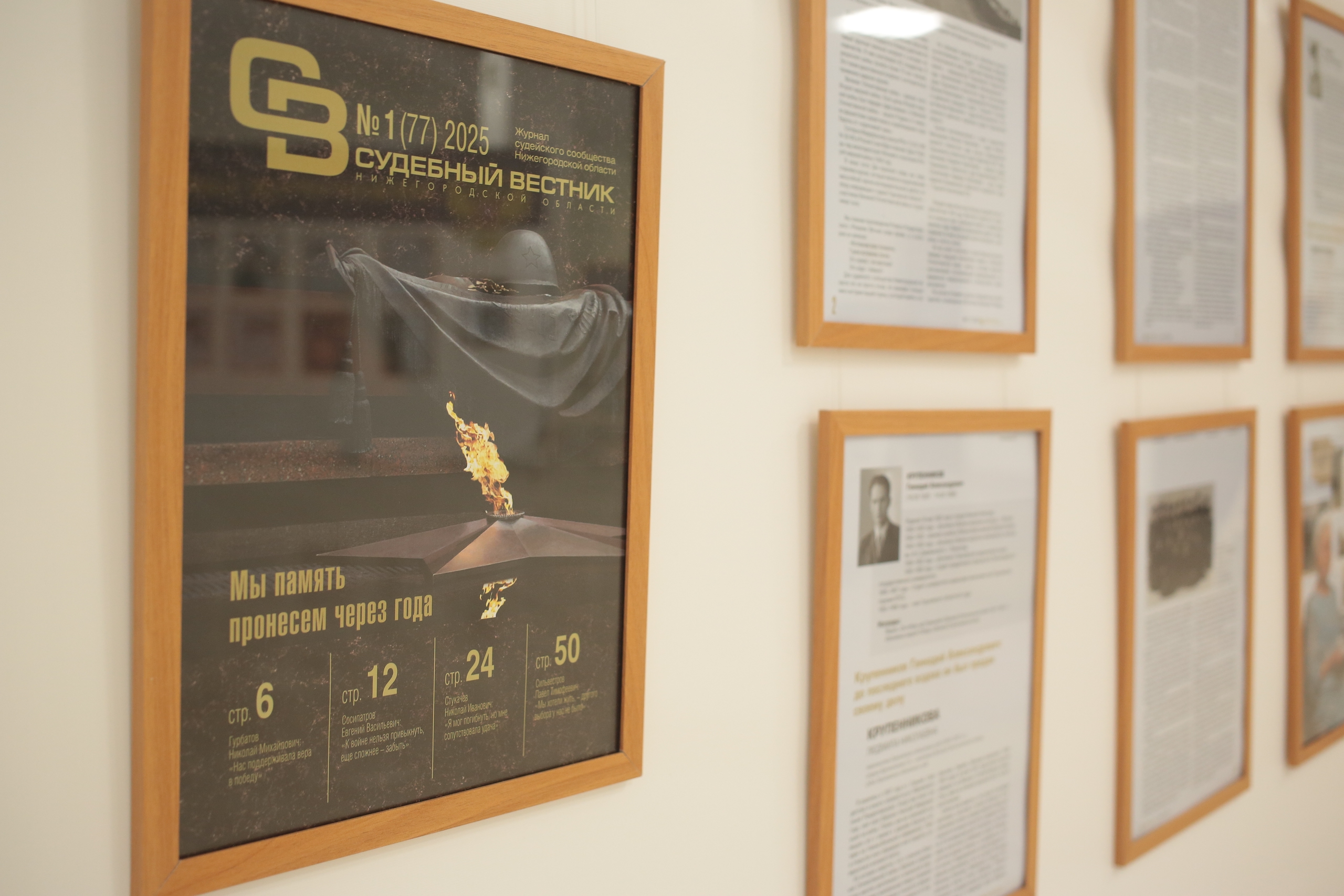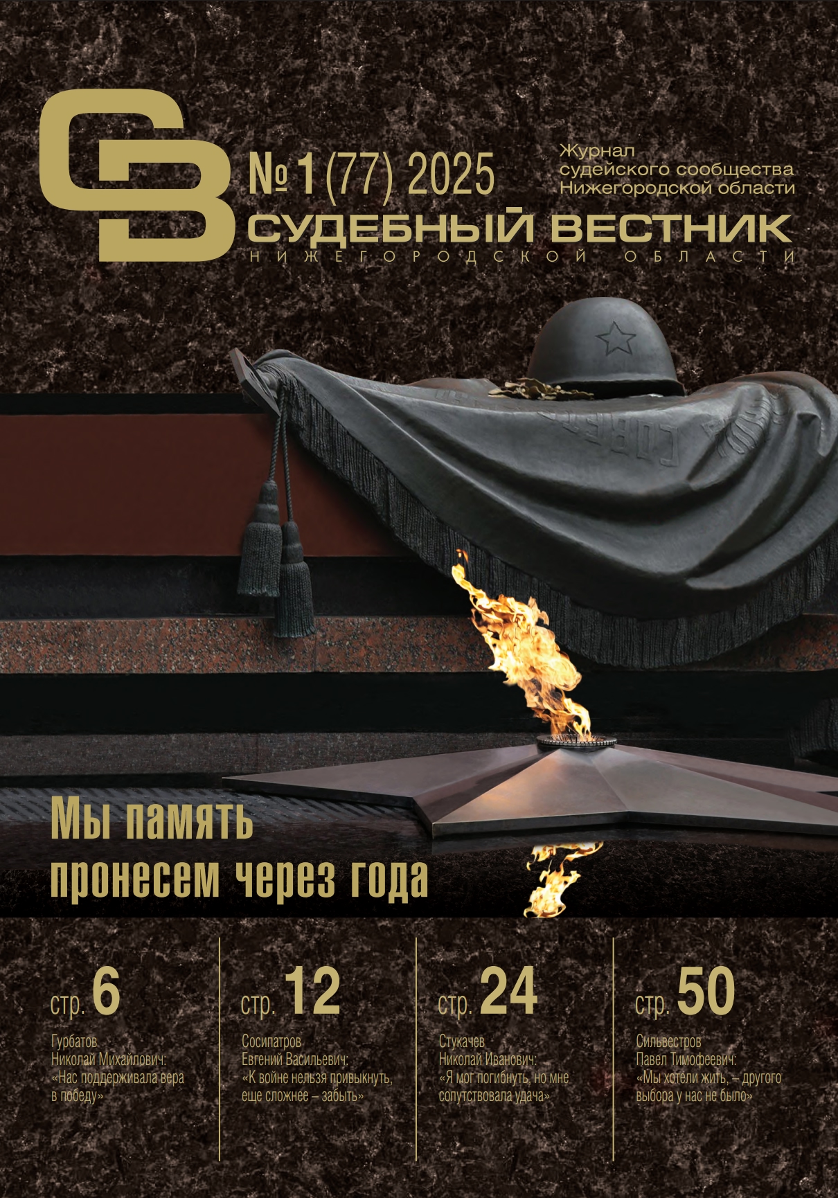 Издан новый номер журнала «Судебный вестник Нижегородской области»В канун Дня воинской славы с гордостью представляем очередной номер журнала судейского сообщества Нижегородского региона «Судебный вестник Нижегородской области». «Мы память пронесем через года» - центральная тема выпуска. Журнал стал продолжением масштабной научно-исследовательской работы по сбору информации о судьях Горьковской области – участниках Великой Отечественной войны и тружениках тыла. На страницах номера опубликованы рассказы-воспоминания о судьях – участниках Великой Отечественной войны: председателе Горьковского областного суда Николае Михайловиче Гурбатове, судье Горьковского областного суда Геннадии Александровиче Крупенникове, председателе Канавинского районного народного суда г. Горького Евгении Васильевиче Сосипатрове, судье Княгининского районного народного суда Горьковской области Николае Ивановиче Стукачёве. Своими воспоминаниями с редакцией журнала поделились их близкие родственники. В ходе работы с архивными документами была найдена неподписанная фотография коллектива Горьковского областного суда, датированная 1965 годом. К поиску ответа на вопрос «кто же изображен на фотографии?» приступили помощник судьи Нижегородского областного суда Юрий Репин и секретарь судебного заседания Нижегородского районного суда г. Нижнего Новгорода Сергей Видяев. В статье «Всматриваясь в прошлое: история одной фотографии» они рассказывают о своих находках. Дети – самые уязвимые участники войны. На их долю выпало не меньше страданий, чем на долю их дедов, отцов и старших братьев, ушедших на фронт. В разделе «Детство, опаленное войной» представлены рассказы судьи Кстовского городского суда Нижегородской области (в отставке) Виталия Петровича Воробьева и ветерана Великой Отечественной войны Павла Тимофеевича Сильвестрова - деда судьи Борского городского суда Нижегородской области. Деятельность судебных органов страны не останавливалась в годы войны и была направлена на выполнение задач, связанных с укреплением обороноспособности, мобилизацией всех внутренних ресурсов на скорейшую победу над врагом. В разделе «Листая архивы» научный редактор журнала Роман Ярцев и помощник судьи Нижегородского областного суда Владислав Заказов обращаются к уголовному делу, рассмотренному в отношении так называемых «Кулебакских призраков». Приговор был вынесен Степаном Павловичем Битюковым, который с 1944 по 1949 год руководил Горьковским областным судом, а в дальнейшем возглавлял Верховный Суд РСФСР до 1957 года. Завершает журнал фоторепортаж по итогам презентации Книги Памяти «Вспомним всех поименно», приуроченной к 22 июня – Дню памяти и скорби. Электронная версия журнала доступна в разделе «ПРЕСС-СЛУЖБА» по ссылке.