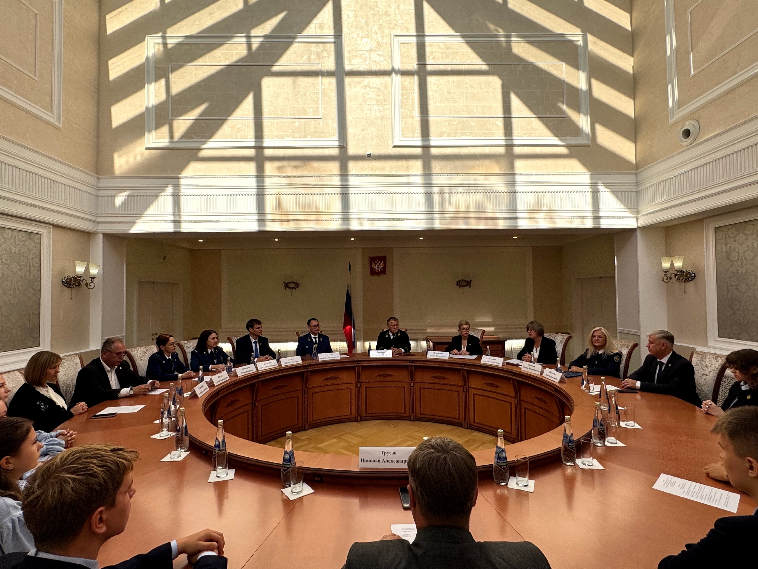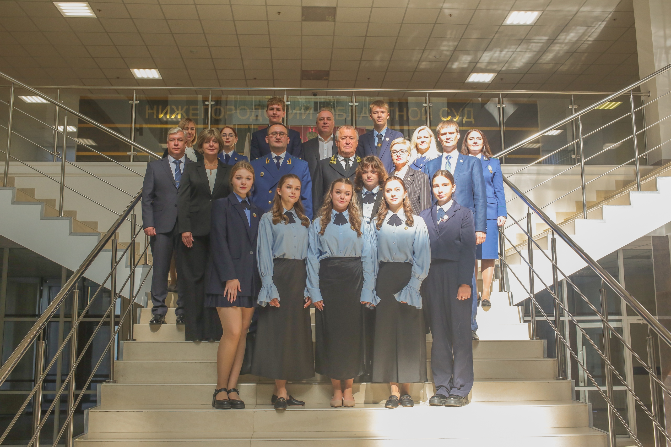 В Нижегородском областном суде подписано четырехстороннее соглашение о создании судебно-прокурорского класса на базе Гимназии №1369 сентября 2025 года на площадке Нижегородского областного суда состоялось торжественное подписание четырехстороннего соглашения о создании судебно-прокурорского класса в Гимназии №136. Свои подписи под документом поставили: - председатель Нижегородского областного суда, председатель Дисциплинарной комиссии Совета судей Российской Федерации Вячеслав Поправко, - прокурор Нижегородской области Андрей Травкин, - директор ПФ ФГБОУВО «РГУП им. В.М. Лебедева» Юлия Журавлева, - директор МБОУ «Гимназия №136» Наталья Лежнина. В своем приветственном слове Вячеслав Поправко отметил: «Создание специализированного класса является не просто актуальной, но и стратегически важной задачей образовательной системы. Такой класс позволит расширить кругозор учащихся, заложит прочный фундамент для будущей карьеры в юридической сфере». Напутственные слова учащимся 10-го и 11-го классов Гимназии прозвучали от всех участников четырехстороннего взаимодействия. Поздравил ребят и министр образования Нижегородской области Михаил Пучков. Видеорепортаж по итогам мероприятия доступен по ссылке.